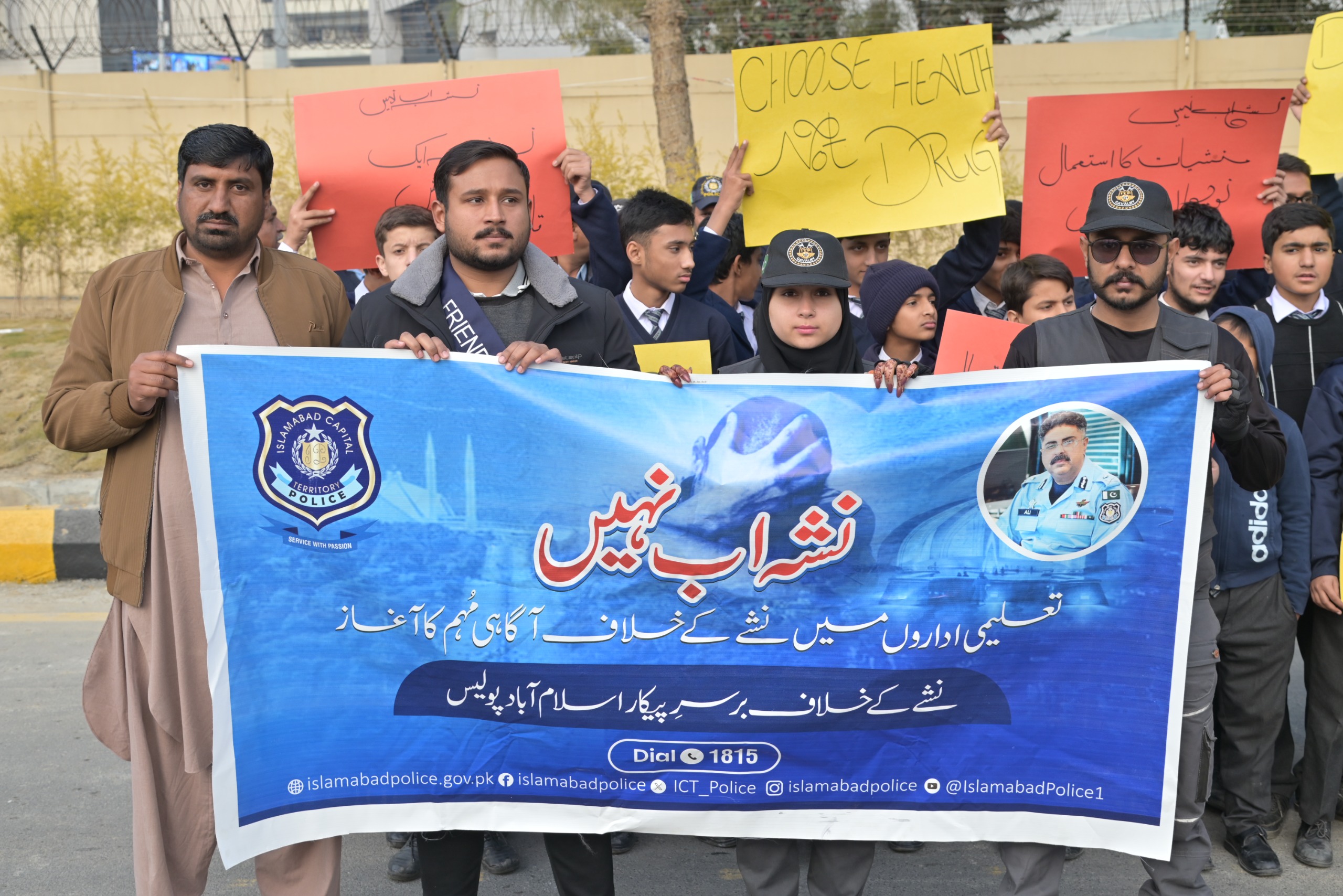 The participants expressed their resolve to stand shoulder to shoulder with Islamabad Police in this campaign against narcotics. The objective of the walk was to educate society, particularly the younger generation, about the harmful effects of drugs and to encourage collective struggle against narcotics.