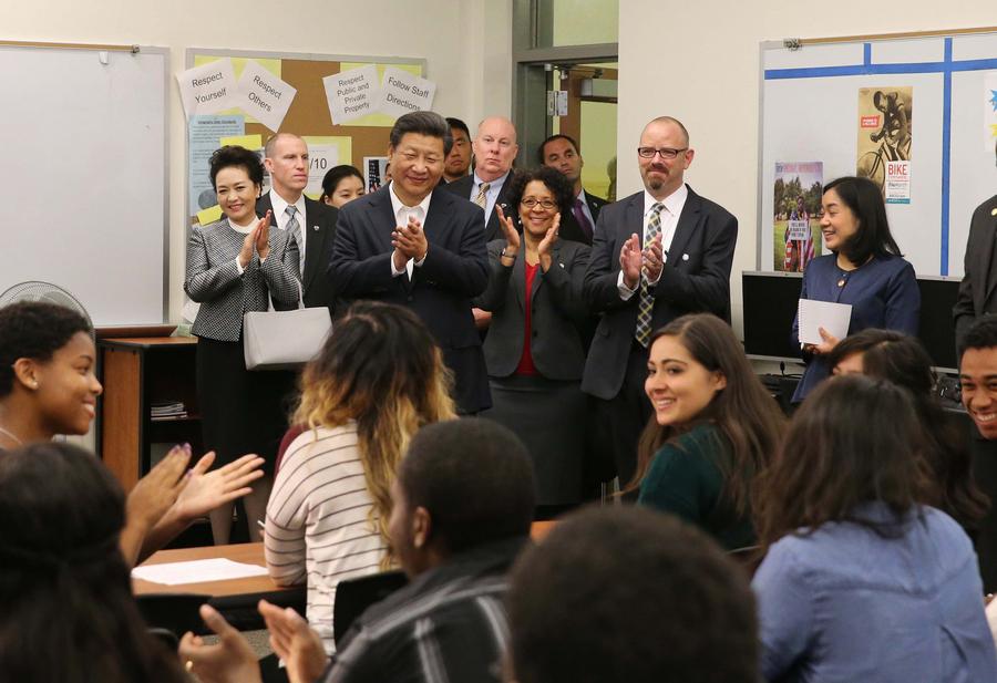 In September 2015, he revisited the school with Peng during his first state visit to the United States as Chinese president, and encouraged students to travel to China to become more familiar with the country.